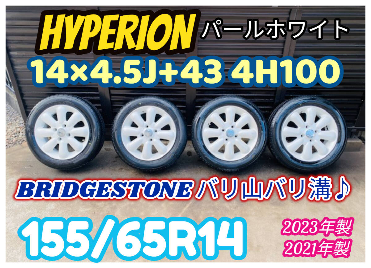 | 社外14インチアルミ ラパン 14×4.5J OFF43 4H PCD100 155/65R14 2023年製2021年製 BS バリ山バリ溝♪ 4本SET ホワイト 軽自動車等 | |