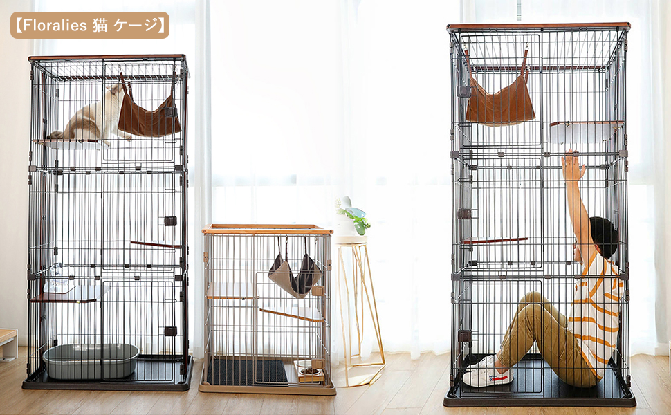 【高品質の素材】高品質な天然木材と金属を使用し、丈夫で安定感のある構造です。広めの設計で、猫たちが自由に動き回れるスペースを提供します。