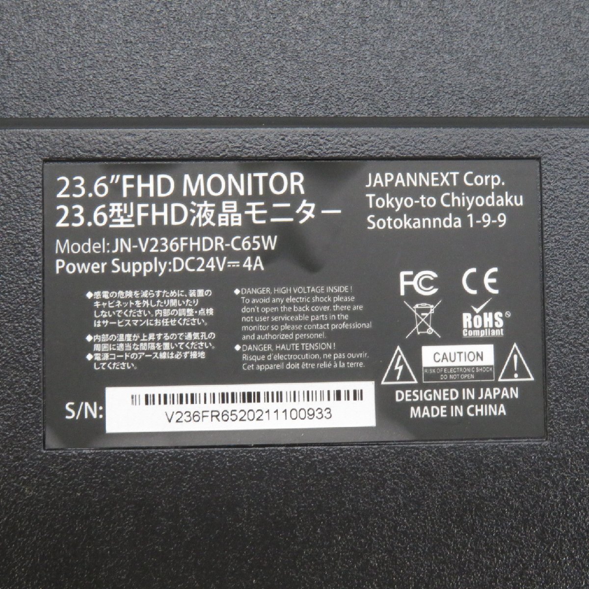 | 型 番 | V236FHDR-C65W |