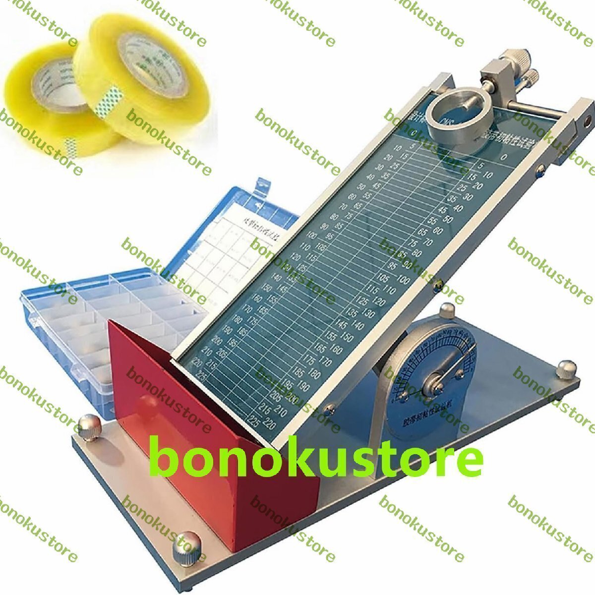 プロフェッショナルテープ初期粘着力テスター、0-60°角度調整可能手動初期粘着力テスター、鋼球の箱付き、テープ、ラベル、保護フィルム、両面テープ用
