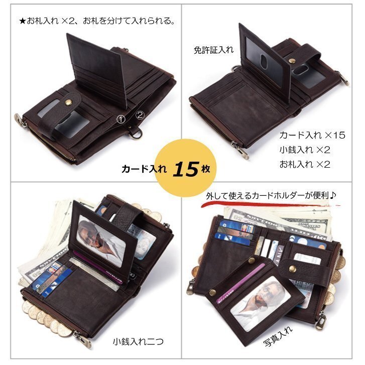 | 商品説明 | ★上質牛革財布♪ 自分使いはもちろん、ちょっとしたプレゼントにも。 ★財布を絶対に落としたくないという人はチェーン付き財布が一番! ★116gの軽量財布、大容量なのにこの軽さ。♪ ★あなたの大事なカードは、安全な場所にありますか? ★カード収納×16、お札入れ×2 小銭入れ×1 |