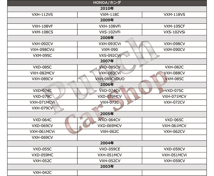 | 【注意事項】 ※マルチビューパックモニター対応ナビではお使い頂けません。 ※適合番号はあくまで参考程度にお考えください。必ずカプラ形状をご確認頂きご検討ください。 ※お車のマイナーチェンジ・モデルチェンジ等、仕様の変化により適合しない場合もございます事を ご了承お願い致します。 ※一部車種では別途アダプターが必要となります。個別での必要アダプターについては当方では わかります為ご自身でお調べの上ご検討ください。 ※メーカーオプションナビには適合致しません。 ※配線を間違えますと、ショートしてナビが破損致しますので、接続にはご注意ください。 ※マルチビューバックガイドモニターには対応しておりませんのでご確認下さい。 ※説明書・保証書等は付属しておりません。 ※当製品をご使用したことによる、お車・ナビへの損傷・破損当に関しては一切の責任をとれませんので、 ご了承の上ご使用下さい。 ※下記ストア注意事項のほうもご確認下さい。 |