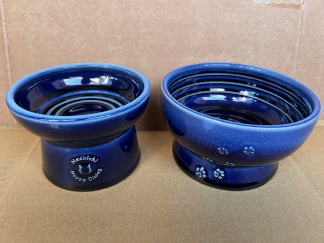 ●日本製 猫壱 脚付きフードボウル+ウォーターボウル 2点セット♪ ブルー