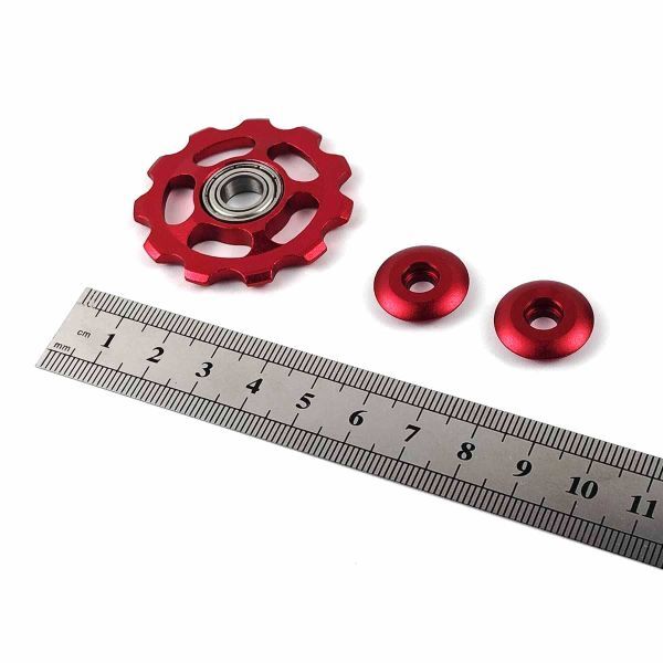 | シールドベアリング アルミ製リアディレイラープーリー カラー:写真1枚めの通り サイズ:直径約4.4cm 自宅保管の未使用品です。 パッケージはありません。 |