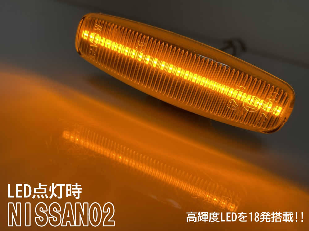 日産タイプ02 点滅タイプ LEDクリスタルサイドマーカークリアレンズ [高輝度LED] 高品質のSMD LEDを片側18発搭載! 昼間でも視認性は抜群です! [ハイフラ対策済み] 安心のハイフラ対策済みの商品です。 抵抗器など必要なく取り付けが可能です。 [Eマーク取得商品] ECの規格であるECE規格に適合している商品です。 [簡単取付] 純正のサイドマーカーを取り外して交換するだけ、 カプラーオンで簡単に交換可能です。 ■カラー:クリアレンズ ※別途、スモークレンズの取扱もございます。 ご落札後のカラー変更はいたしておりません。 ■内容:本体(左右セット(1台分)) |