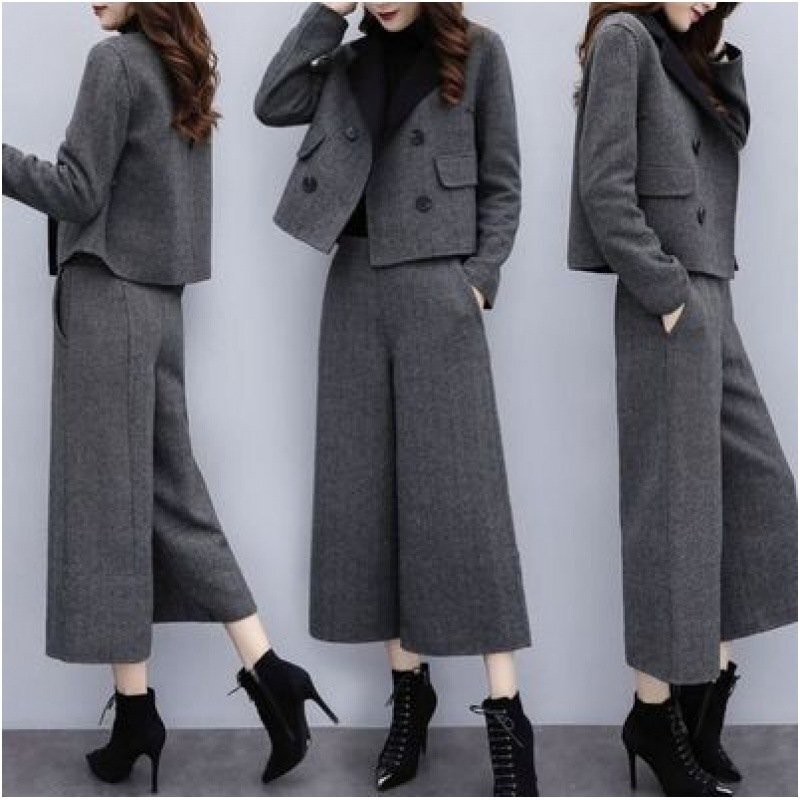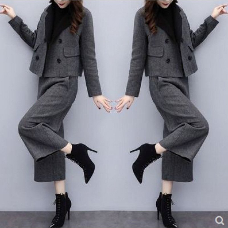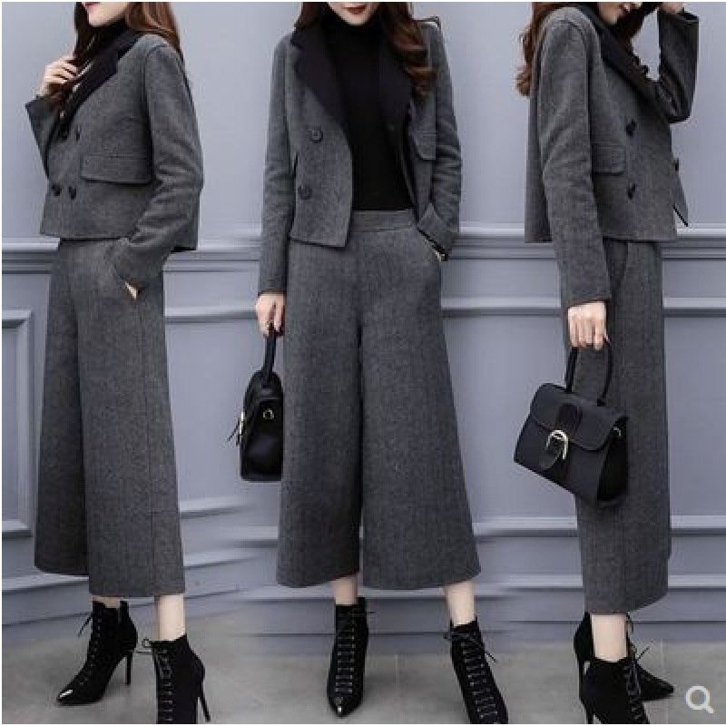 スーツ レディース パンツスーツ 上下セット 着痩せ ファッション スーツ+ワイドパンツ 九分 おしゃれ 2点セット 春秋冬 無地 ★Mサイズ [浏览原始页面]