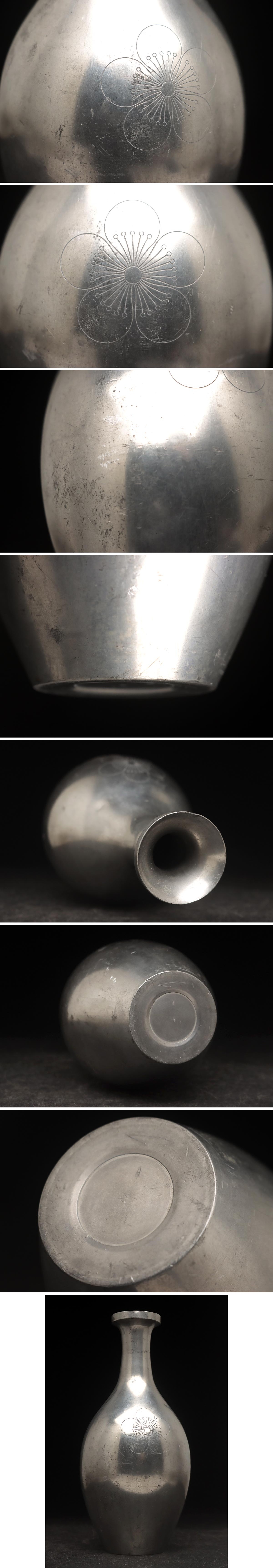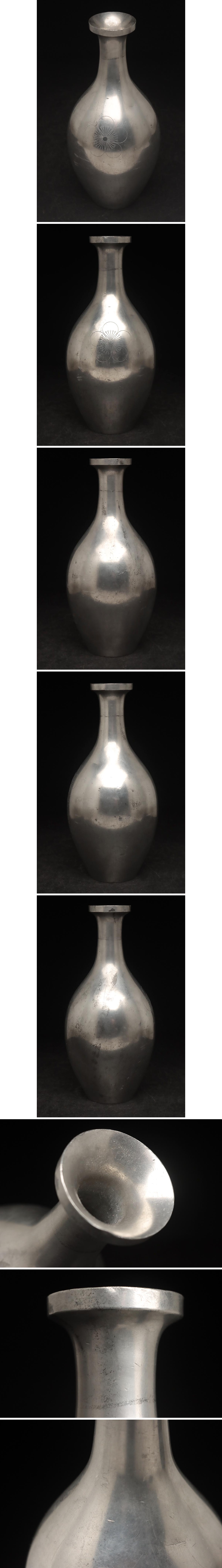 | ◆ 朝鮮美術 李王家下賜品 李花紋章入 錫徳利 高22.5cm / 重935g・酒瓶・花瓶・花入 古金工 古美術 検) 李王家美術工場造 ◆