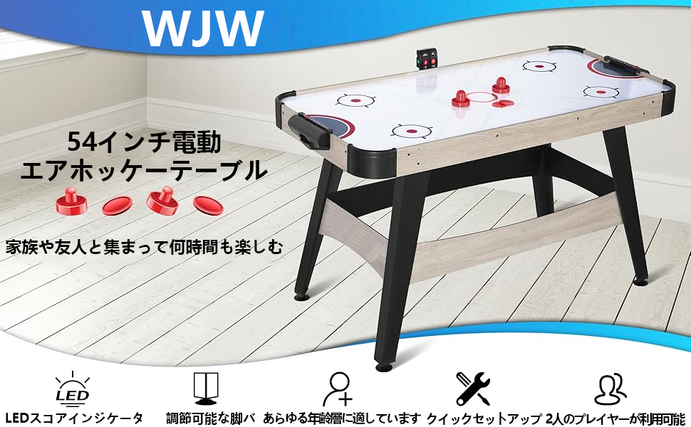 デジタル LED スコアボード: 当社のエア ホッケー テーブルには、スコア トラッカーとパック ディスペンサーを内蔵したデジタル電子 LED スコアリング システムが付属しており、エア ホッケー テーブルでゲーム ナイトを楽しく過ごし、本物のゲーム雰囲気を演出できます。フットカバー、調節可能なフットバー、クロスバー脚サポートも付属しています。