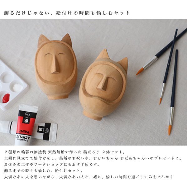 天然無垢材/無塗装【 猫 だるま】