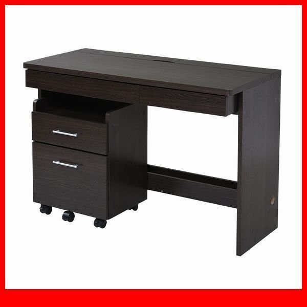 シンプルなデスクにチェストが付いたセットアイテム。 デスクの足元には配線が収納できるスペースがあり、パソコンなどの充電コードが邪魔になりません。 幅100cm、奥行45cmのコンパクトなデザインは、 書斎でもリビングでも置き場所に困らずご使用いただけます。 |