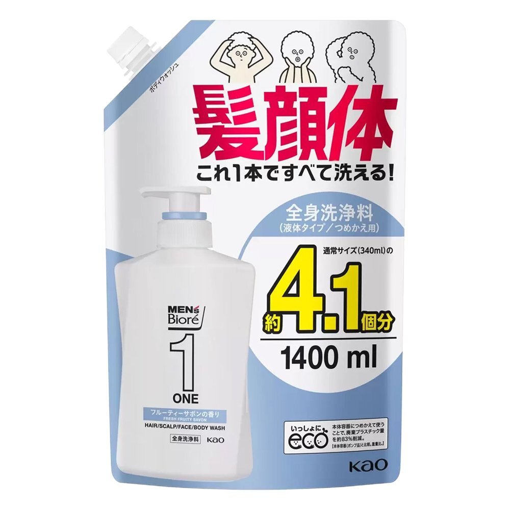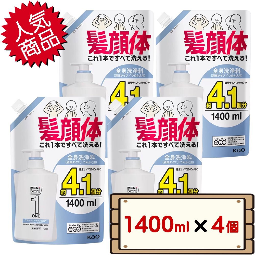 | 商品名 | 花王 メンズビオレ ワン ONE オールインワン 全身洗浄料 フルーティーサボンの香り 詰め替え 1400ml×4個 |