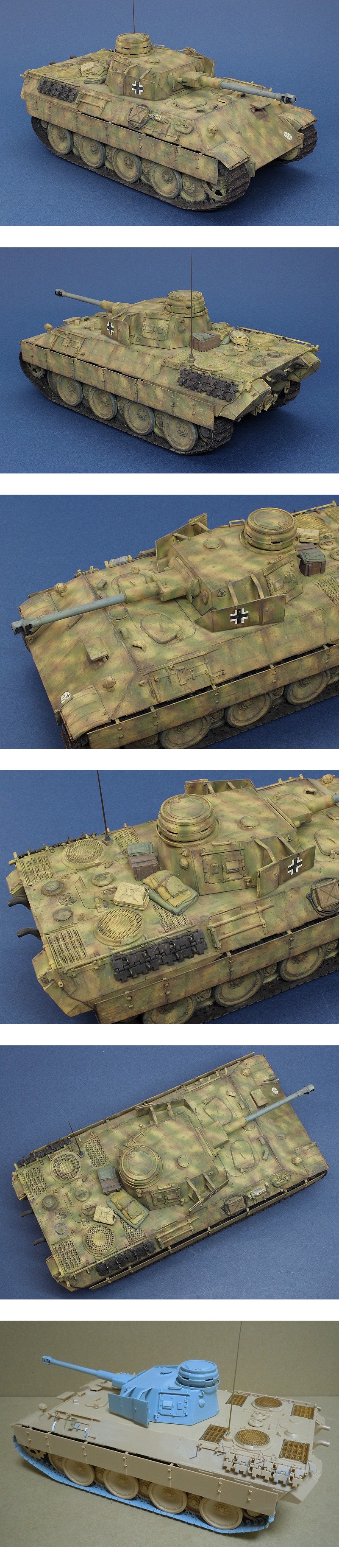 | スマホの方は 【もっと読む】 をタップして 最後まで御覧ください。 ■完成品■ タミヤ+ドラゴン 1/35 ベルゲパンター Ⅳ号砲塔 第653重戦車駆逐大隊 第653重戦車駆逐大隊で、ベルゲパンターD型に Ⅳ号戦車の砲塔を搭載した現地改造車です。 両車のターレットリングの直径が異なるため、現地改造で 旋回可動は難しいと思われ、固定だと推定。 車体はタミヤ、砲塔はドラゴンのキットを使用しています。 2枚の実車写真から、砲塔のシュルツェンは左右のみで 斜め後方&真後ろは無いようです。 前部のボッシュライトは、左右の2ヵ所装備にしています。 大半のOVMは外されているので、エッチングパーツや 3Dパーツを使い再現しています。 各ハッチは掲載画像の状態で固定です。 砲身は上下可動できますが、砲塔は上記理由にて固定です。 牽引ロープはモデルカステンのソフトステンレス製。 履帯はプラ製連結式で固定です。 アンテナはパッションモデルの真鍮製です。 出品作品は、掲載画像に写っているものが全てです。 キットの空箱/組立説明書/残りのデカールやパーツは含まれません。 当方サイト → 模型工房オーナイン 梱包の段ボール箱や緩衝材は、中古品・古新聞などを使います。 曜日に関係なく本業の予定変更で発送の出来ない日があります。 以上、御了承の上で入札をご検討くださいませ。 |