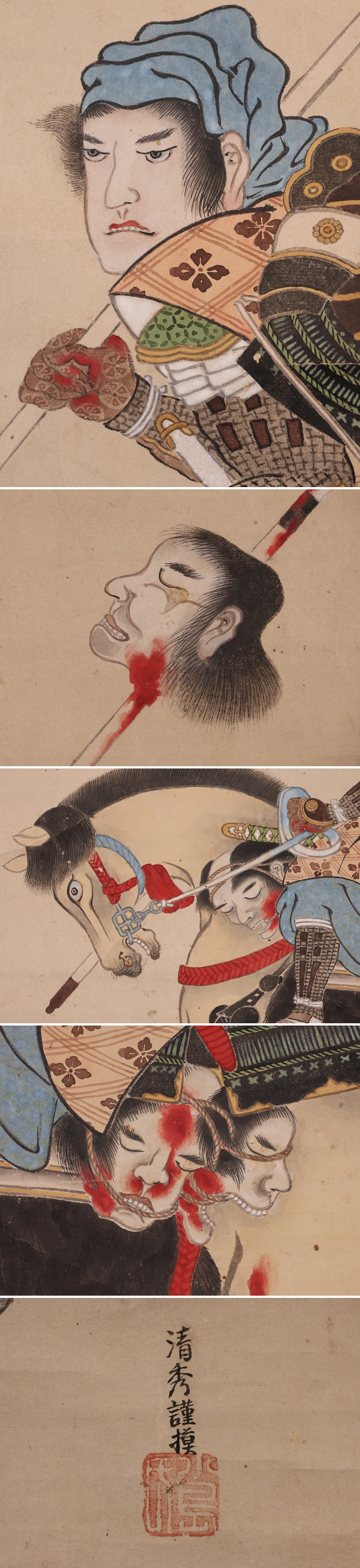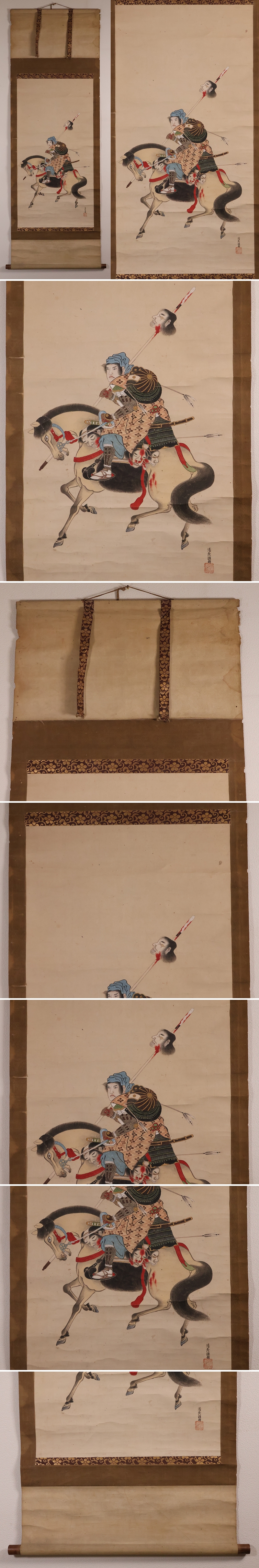 ◇【模写】日本画 前田利家桶狭間凱旋画 清秀謹摸 紙本 掛軸 武者 MB156◇