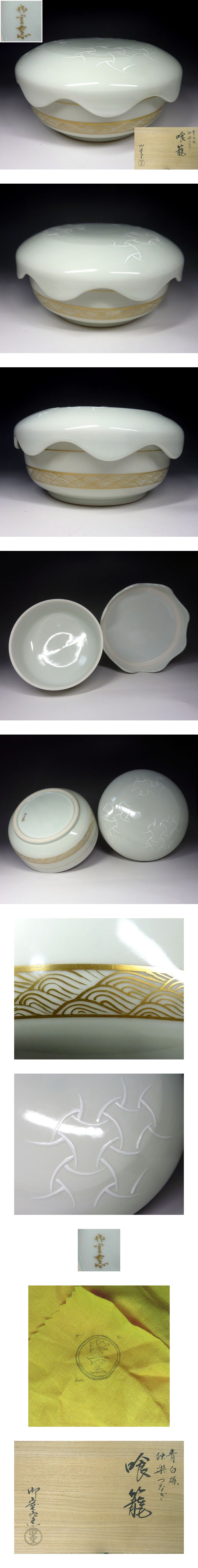 | 概要 | 御室窯の青白磁独楽つなぎ喰籠です。 |