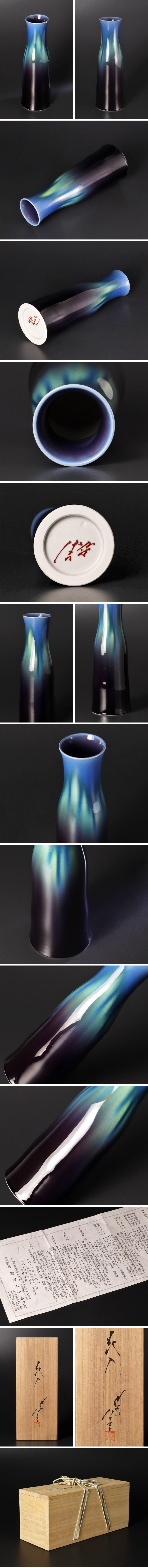 徳田八十吉ならではの彩釉と耀彩の技法が冴えわたり、気品の中に深い静謐さを湛えた花入れです。 ★商品は三代徳田八十吉の作品である事を保証致します。 |
