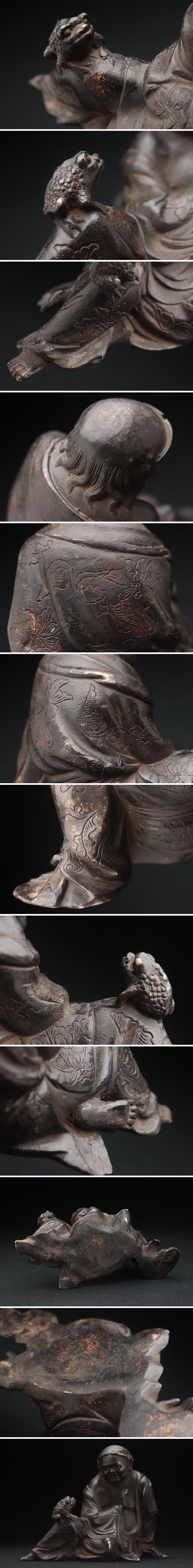 | ◆ 時代 古銅 無垢「蝦蟇仙人」置物 高12.5cm / 重1.1kg「蝦蟇鉄拐」床置 床飾り 金工古美術 ◆