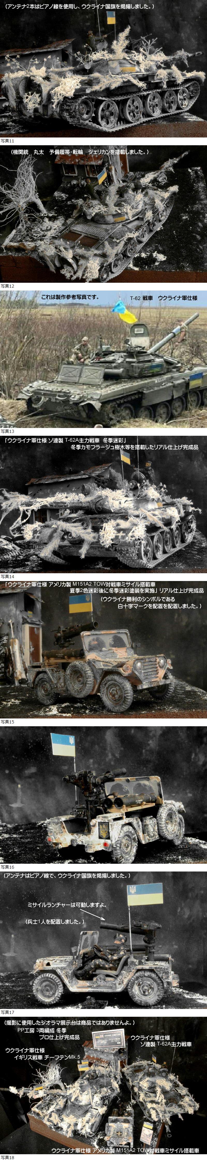 PP工房 1/35 3両編成 冬季 プロ仕上げ完成品【ウクライナ軍仕様[イギリス チーフテンMk.5][T-62A戦車][M151A2 ミサイル]】兵士3人配置 [浏览原始页面]