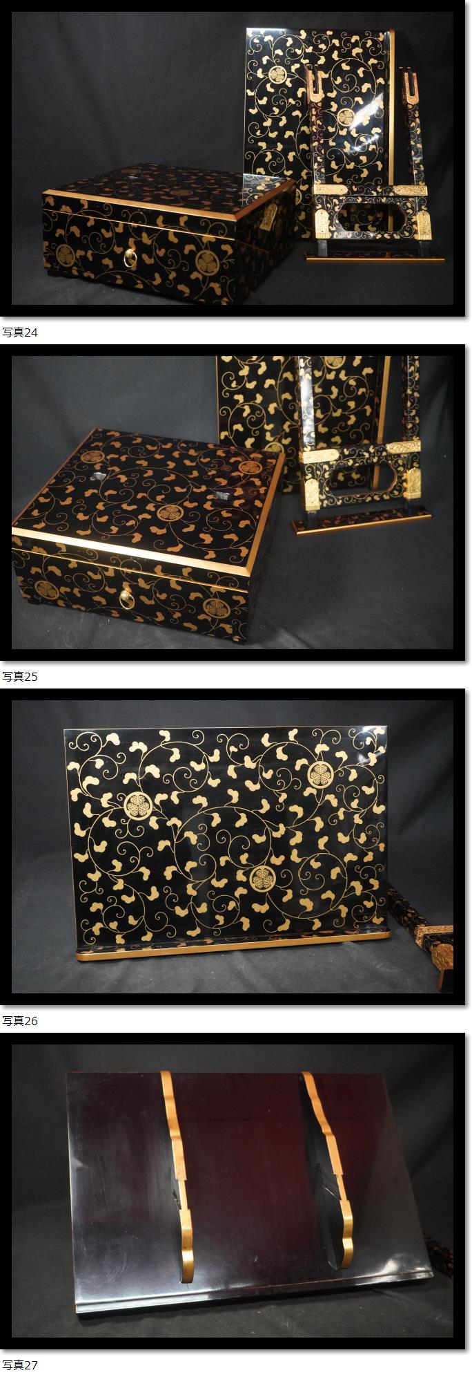 | 見台 蒔絵 徳川 三つ葉葵 家紋 葵の紋 和骨董 譜面台 読書台 |
