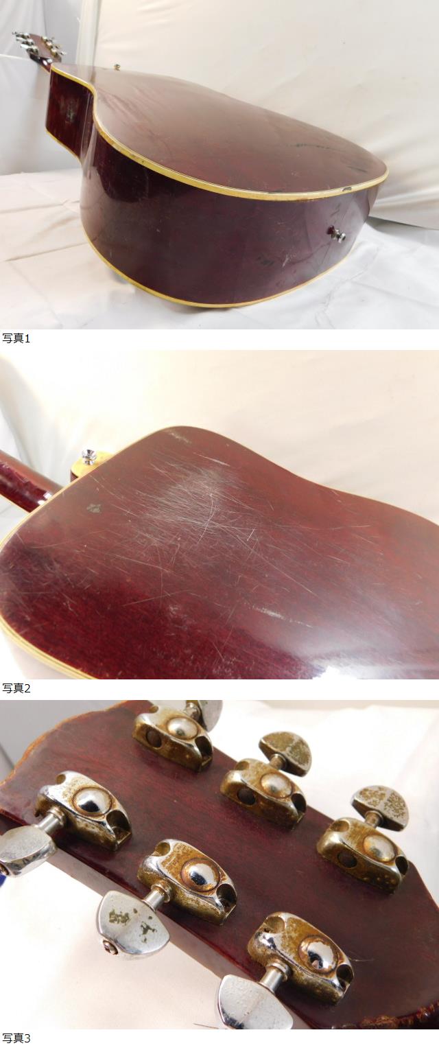 | 商品紹介 | ◆必ず最後までお読みください◆ 送料1540円(下記地域以外)【保証有り】 (北海道の方は1980円をご負担ください。沖縄、離島はゆうパック送料着払いとなりますのでご了承願います。その他着払いをご指定の場合は送料が変わりますのでご了承ください。ご落札分のみのご入金の場合も着払いとなり、記載の送料よりも高くなる可能性がありますのでご注意ください)(※佐川急便発送ご落札者様から集荷依頼していただければ可能) ※お引き取り歓迎です。お引き取りに来られる場合は、梱包をしませんので、お取メッセージに、ご落札翌日のAM9時までにご連絡くださいm(__)m(引取りは金・土・日以外の朝9時~17時00分まで可能その他ご相談) ※ご落札後、同梱をご希望の商品がありましたら翌日朝9時までに「同梱依頼をする」をチェックしてご連絡ください。こちらから折り返し送料のご連絡をさせていただきます。 ※配送の日時を指定される場合,その他ご要望がありましたら ご落札翌日朝9時までに、お取引メッセージにお知らせ願います。発送の都合でそれ以降にご連絡いただいた内容のご要望はお受けできない場合がありますので予めご了承願います。ご指定日時やご要望は簡潔にご記入ください(宅急便指定可能時間→午前中・14~16時・16~18時・18~20時・19~21時) _________________________________ ・弦は6本です ※付いている弦はオマケとしてお考え下さい。 ・スケール約 326mm (ナットから12番目フレットまで測定) ・弦長・・約 651mm (ナットからサドルまで測定) ・ナット幅・・・約 44mm ・サドル幅・・・約 76mm ・ブリッジの右側に浮きあり。 ・シリアルナンバー…7〇?0302 ※読めませんでした。写真をご参考ください。 ・記載されていること…Greco/202S ★全体的にキズ・汚れ・ホコリあり。塗装ヒビ?が多くあり目立ちます。 ★テープ跡あり。 ★ペグにサビ?変色?あり。 ★ナットの角に欠けがあり、弦が外れています。 ★簡単に清掃しておりますが、キズ・汚れ・ホコリ等ございます。他、欠品・見落とし等あるかもしれませんのでご了承願います。 ★実際に使用しての確認はしておりません、実際に使用できるのか分かりませんのでご了承上ご検討ください。 ★細かく調べていません 写真をご参考ください。 ★部品がすべて揃っているか不明です。 ★それ以上の確認はしておりません、短時間の確認ですので、その後の上記の動作を保障するものではありません。ご了承の上ご検討くださいますようお願いいたします。