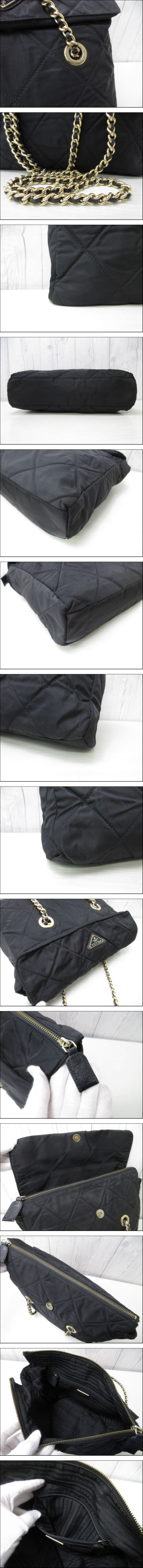 | 極美品 PRADA プラダ テスート キルティング ゴールドチェーン ショルダーバッグ バッグ ナイロン×サフィアーノレザー 黒 A4収納可 98364Y | ||