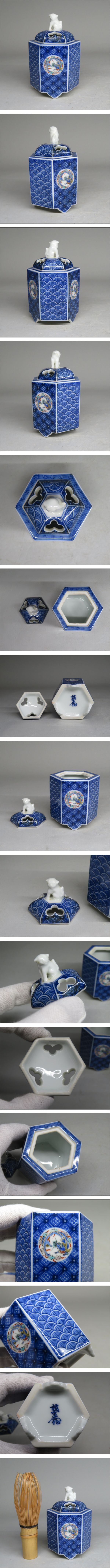 | 十二代 酒井田柿右衛門 染錦地紋窓色絵龍画六角形香炉 茶道具/煎茶道具 | |||