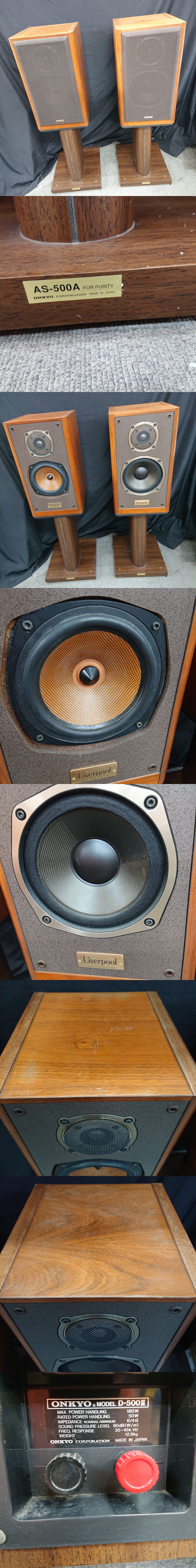 | ※必ず最後までお読みください。 Please be sure to read to the end. 一定要到最后※ | 商品概要 | 数あるオークションの中からこちらの商品をご覧頂きまして誠にありがとうございます! ※商品説明と注意事項を必ず全てお読み頂いた後にご入札下さい※ 引き続き 安心できる気持ちの良いお取引を心掛けてまいりますのでどうぞ 宜しくお願い致します! 色んなジャンルの商品を多数出品しておりますので、こちらをクリックしてご覧ください!! 東京都公安委員会 古物商許可 第307781505147号 ◎オンキョー◎ONKYO D-500II Liverpool 2ウェイ・2スピーカー・バスレフ方式 スピーカーシステム スピーカースタンド(AS-500A)付 キノシタ・ダヴィス 即発送 ※最下部にも写真掲載中なので必ずご覧下さい。 【商品概要】 DS-500の改良型スピーカーシステム。 音の原点に帰り、人の口という一ヶ所から出るボーカルを、いくつものユニットで再現するのではなく、2ウェイという形にこだわって実現してます。 低域には18cmのコーン型ウーファーを採用しています。 2ウェイで問題視されていた中ヌケを防ぐため、ピュアクロスカーボン振動板の軽量化を図っており、振動板で15%、エッジで15%、ボイスコイルで22%軽くし、トランジェント特性に優れた振動系とすることで対応しています。 また、エッジには内部ロスが大きく、しなやかで弾力性がある2層構造のものを新しく開発し、音質に大きな影響を与える部分について徹底的にこだわっています。 高域には2.5cmのチタンオーバルドーム型トゥイーターを採用しています。 オーバルダイアフラムとは、外周部で円形、中心部に近づくにしたがって楕円形になる特殊形状のドーム振動板で、このオーバル形状は従来のレーザーカットやスタガードリブ方式を用いた共振解消構造を発展させたもので、金属板特有の高域共振を、円形から楕円形に変わる形状の変化によって取り除いています。 また、フレームにコルク材を貼る事でフレーム前面からの二次反射を低減しています。 ネットワーク部は、電気的、磁気的、アコースティックな面からの干渉や影響を遮断するため、セパレートレイアウトのアイソレートワイヤリングネットワークを採用しています。 さらに大型ポリエステル・フィルムコンデンサーの使用など、入力信号を損なわずに各ユニットに供給するためのパーツ選びに徹しています。 エンクロージャーは新開発のバス・トランスミッションシステムを採用しています。 いままでの紙管型バスレフダクトに代えて、折り曲げ型の木製バスレフダクトを採用しており、これによりいっそう広い周波数範囲にわたって発揮され、低音のエネルギー感と過渡特性が向上しています。 また、バスレフダクトはエンクロージャーに固定されているので、全体が強化されて不要な振動を低減しています。 さらに背面を含めた高級ツキ板仕上げとすることで、背面を意識せずにレイアウト出来ます。 AVに対応するため、防磁設計となっています。