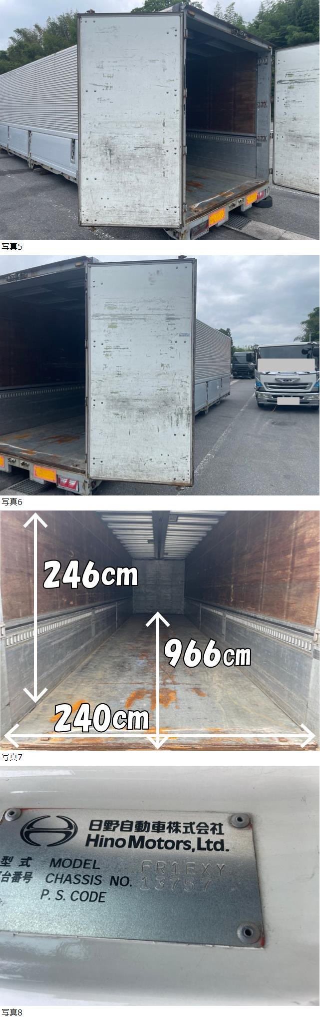 | 大型ウイング 箱 平成20年 日野 10輪から取り外し 倉庫 内寸:966×240×246㎝ |
