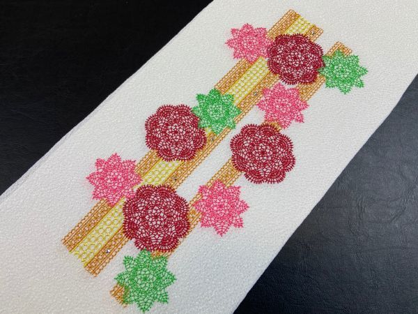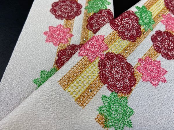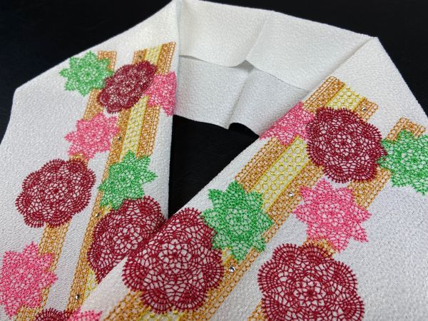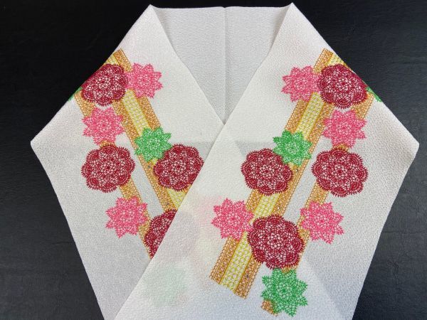 新品 豪華な刺繍を施した縮緬の半衿です。