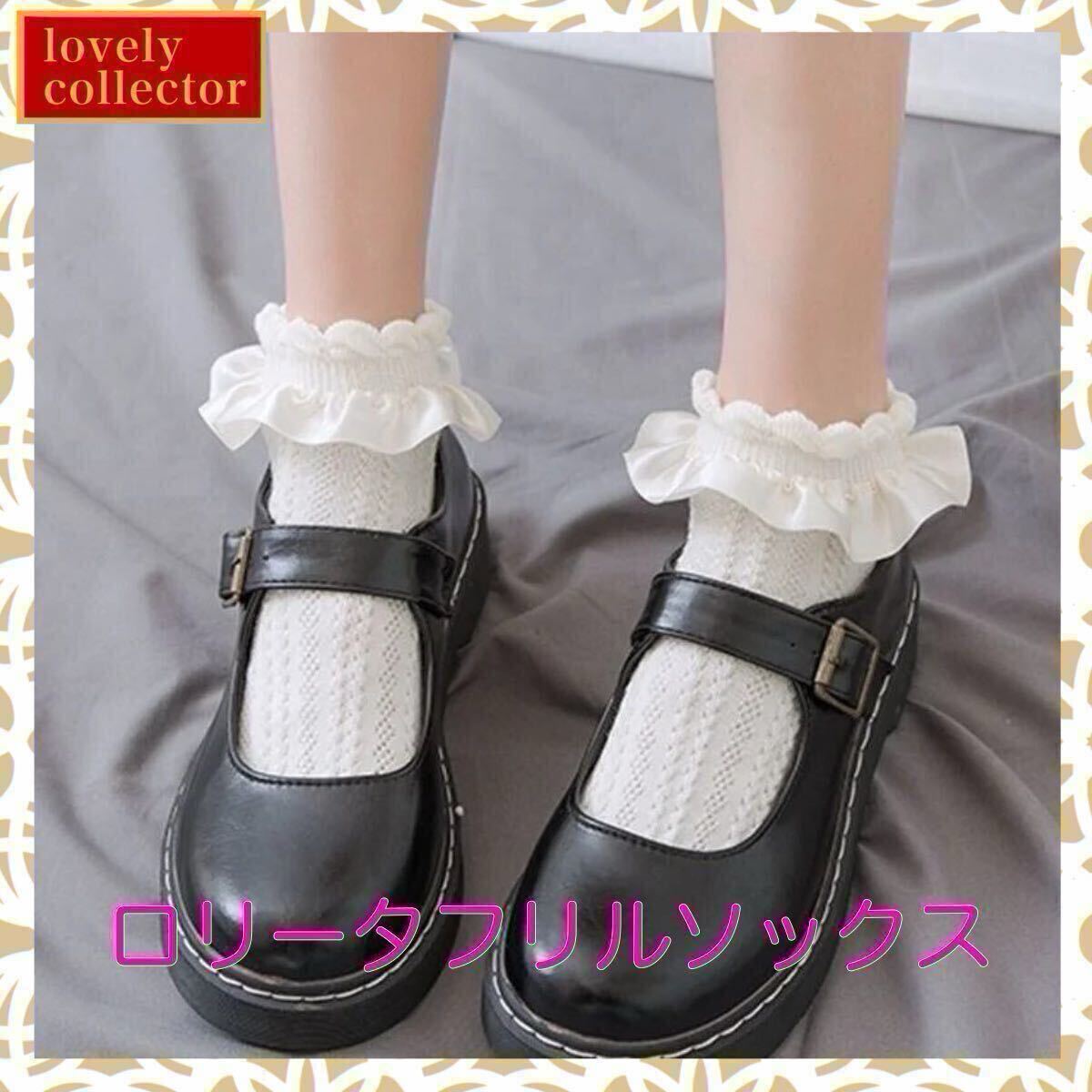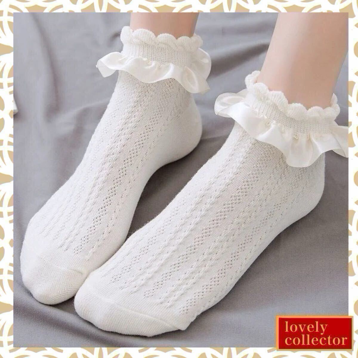 | レディースソックス ショート 靴下 ロリータ フリル 白 ホワイト | |||