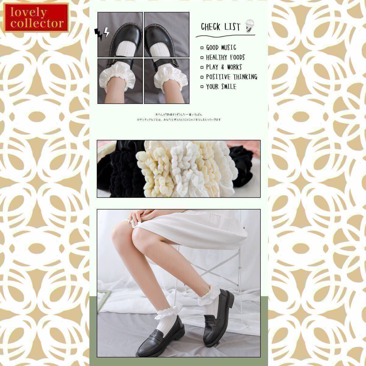 | ご覧いただき有り難うございます。 レディースソックス ショート 靴下 ロリータ フリル 白 ホワイト の新品となります。 ○この商品について セット内容:レディースソックス ショート 靴下 ロリータ フリル 白 ホワイト 一足※ 一部の写真にある靴は商品に含まれておりません。 実際の色、柄等が写真と多少異なる場合がございます。予めご了承ください。 ・メイン素材: コットン 肌ざわりがとっても気持ちいレディース ソックス です。 ・サイズ:free 足の長さ20~24センチ 普通靴のサイズS~L 柔らかい 伸縮性抜群 ・カラー:ホワイト 白 ○説明 ・【プロダクト】:やわらかく、ほどよい厚みで履き心地の靴下がこれからの季節に大活躍間違いない。 ・【乙女心大満足】フリル付き、とってもかわいいレディースソックス♪ ・【可愛いあなたに!】ガールズ からレディースまで幅広い年齢層でご使用頂けます。フリルが可愛いクルー丈ショートソックスです。豊富なカラーでコーディネートに合わせてセレクト!日常使いやデートに最適。好きな男性の心を得ます。 ・【ずっと探していた靴下】:可愛いフリルの靴下が女子心をくすぐる可愛い靴下♪ドレスやフォーマルなお洋服にもぴったりです。ヒール・パンプス・スニーカーとの相性も抜群! 特記事項 洗濯の際は必ず 単品で手洗いをお願い致します。 デリケートな素材を使用しておりますので、お取扱にはお気を付け下さいませ。 生産ロットにより柄の出方や色の濃淡が多少異なる場合がございます。 お使いのモニターや撮影時の光の加減などにより 画像と実際の商品のカラーが若干異なる場合もございます。 測り方により誤差が生じる場合がございます。 海外製品のため、縫製基準が日本と異なるケースがあることから 縫製が甘い・雑・糸の始末ができていない等が見受けられる場合もございます。 | |||