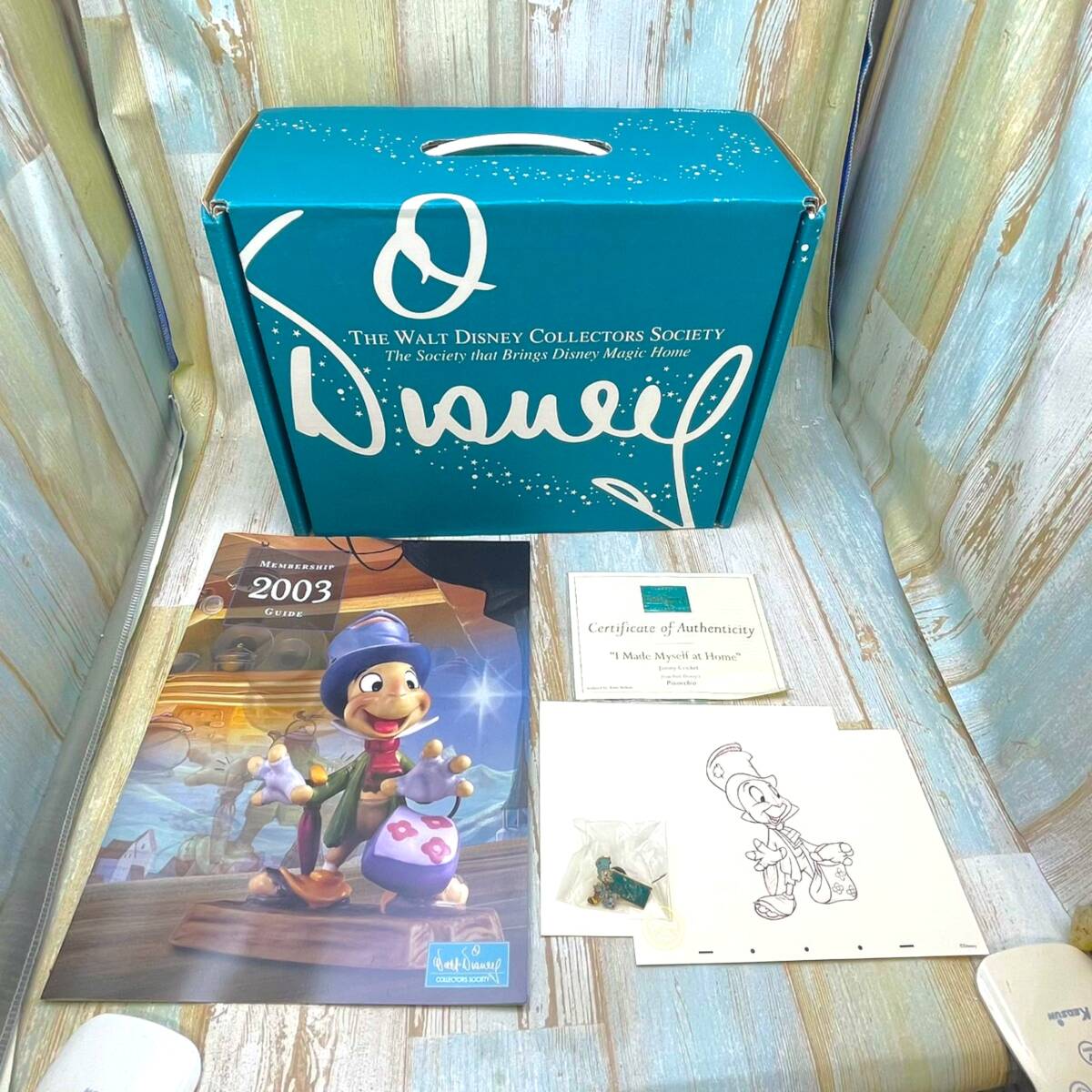 レア★WDCC ピノキオ Pinocchio ジミニー クリケット コレクターズボックス ピンバッジ 陶器製 フィギュア★ディズニー Disney TDL本体:高さ約10.5cm 横幅約8cm 奥行約5.5cm