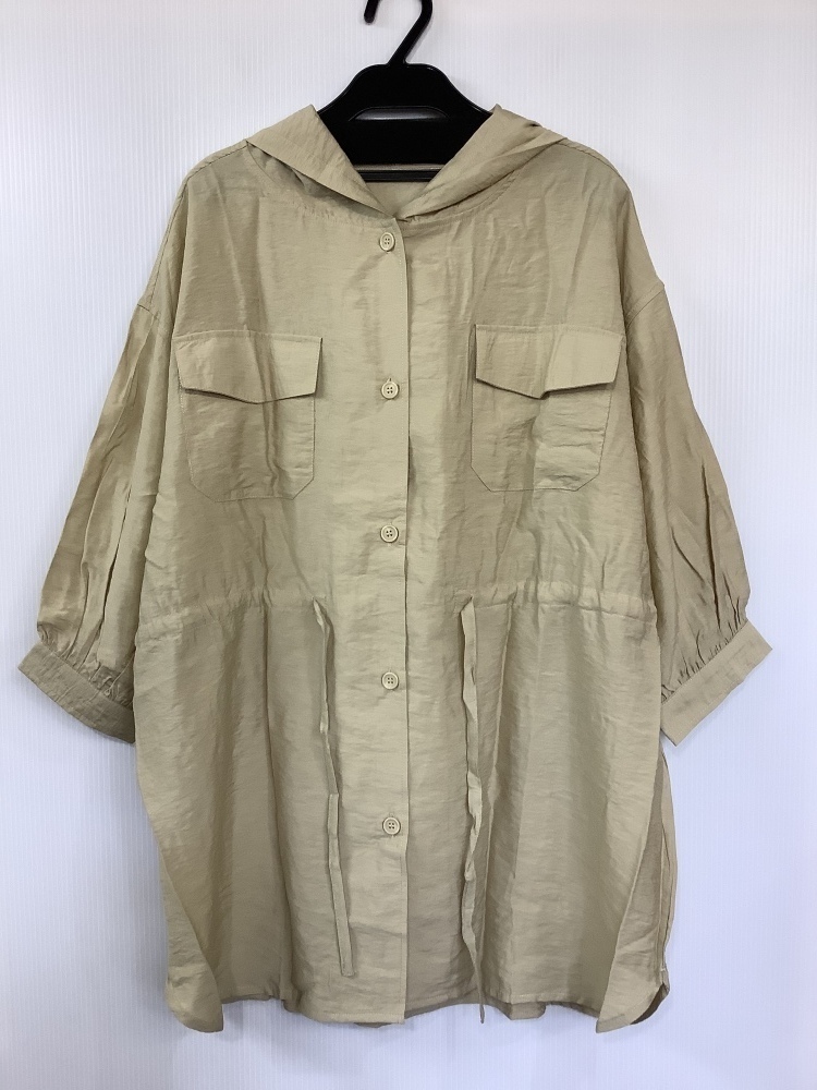 | 管理番号:129170 ベージュ薄手ジャケット フード付き ウエスト絞り 表示サイズ:M 【平置き実寸】 脇下身幅 60cmほど 丈 77cmほど 肩幅 56cmほど そで丈 35cmほど このお品は春向けです。 特筆するようなダメージは見当たりません。 |