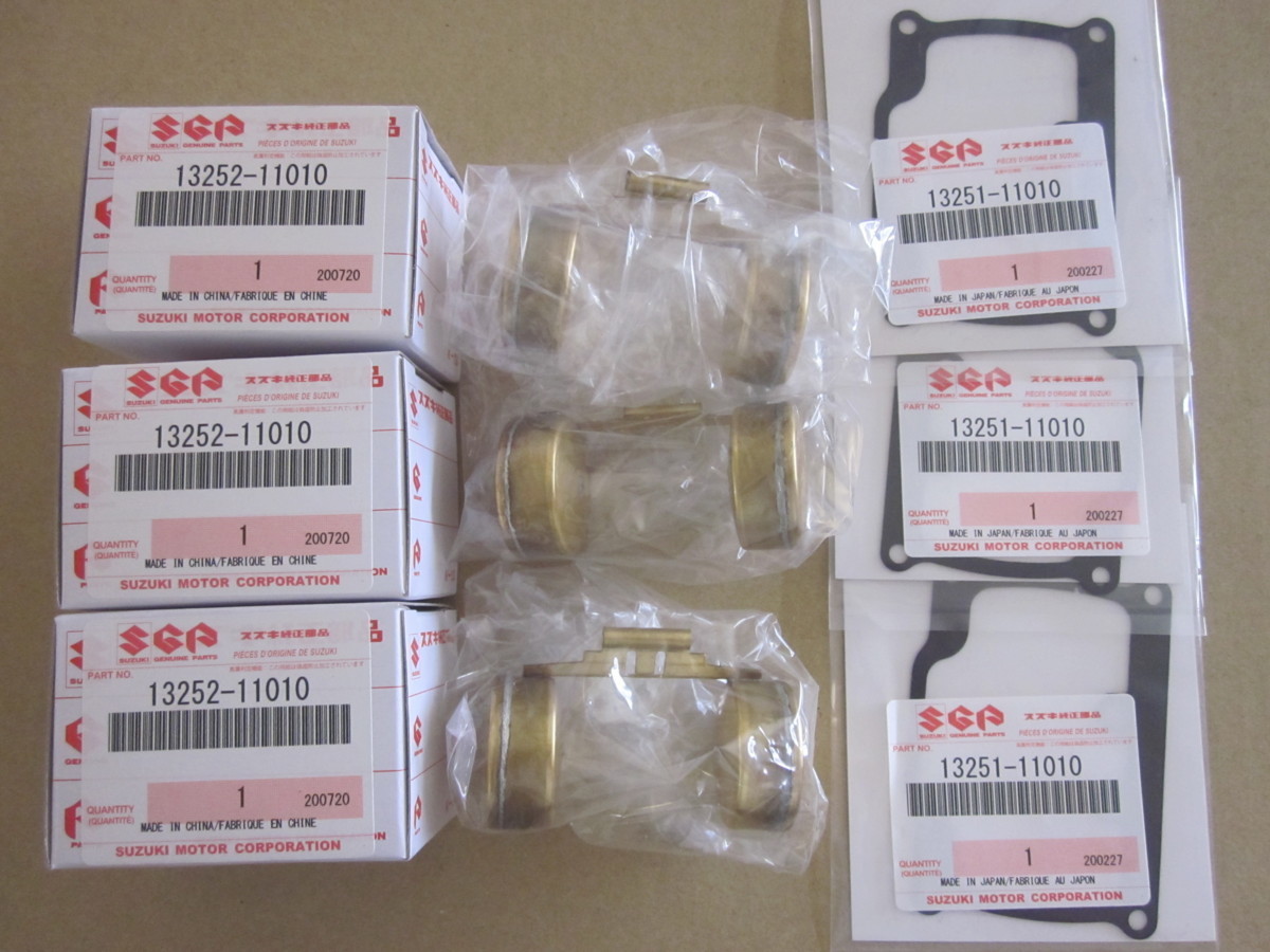 新品スズキ純正 フロート,チャンバーガスケット 各3個 セット 適合車種 GT380 純正品番 13252-11010 ×3個 純正品番 13251-11010 ×3個 注意 純正品番にて必ず適合のご確認お願い致します。 不適合等からの返品交換クレーム等一切無しにてお願い致します。 サイズ等のお答はしておりません。 | |||