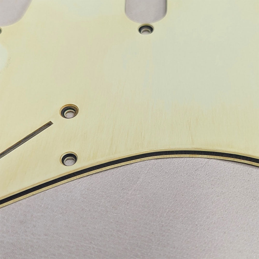 ミントアイボリーのピックガードに特殊加工を施したレリックパーツ。