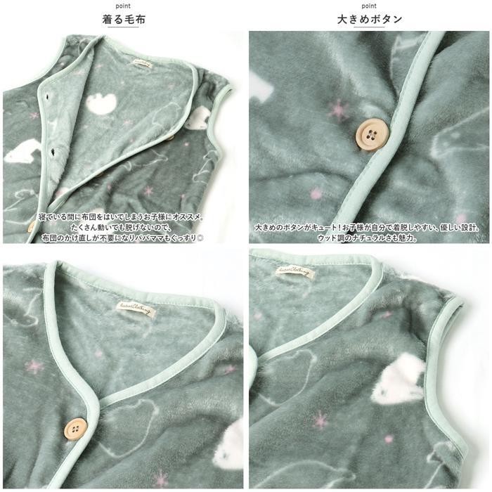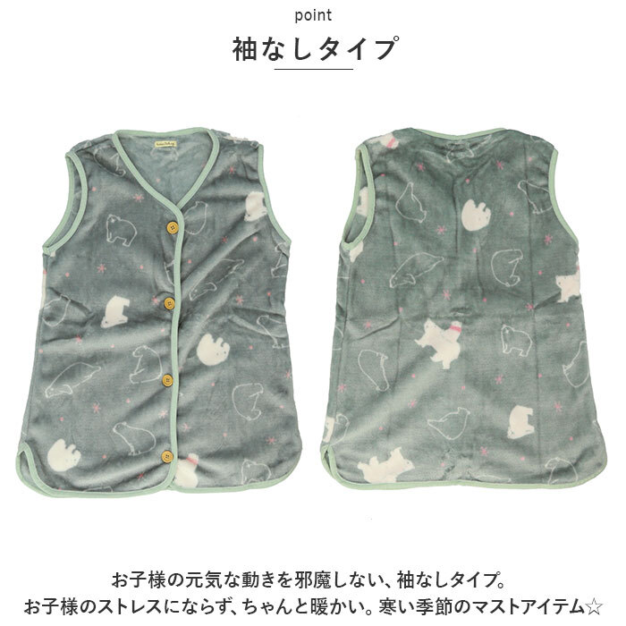 | 商品説明 | ・・ふんわり柔らか素材の「着る毛布」フランネル KIDSスリーパーが登場。 ・【ふんわり柔らか素材】 ・ふんわり柔らかな肌触りが魅力。思わず触りたくなる気持ちよさで、お布団のように身体を包み込んでくれる。 ・【着る毛布】 ・寝ている間に布団をはいでしまうお子様にオススメ。たくさん動いても脱げないので、布団のかけ直しが不要になりパパママもぐっすり◎ ・【長く愛用できる】 ・ベビーからキッズまで長い期間愛用できるアイテム。ベビー期は着る毛布として、キッズ期はベストとして。ワンサイズで100~130cmまで着用OK。 ・【袖なしタイプ】 ・お子様の元気な動きを邪魔しない、袖なしタイプ。お子様のストレスにならず、ちゃんと暖かい。寒い季節のマストアイテム☆ ・【大きめボタン】 ・大きめのボタンがキュート!お子様が自分で着脱しやすい、優しい設計。ウッド調のナチュラルさも魅力。 ・【チクチクしにくい】 ・ポリエステル素材を使用した、あったかいけどサラっとした生地。チクチクしないので、快適な着心地。 ・【選べるデザイン】 ・ほっこり優しい色合いがおしゃれな選べるデザイン☆男の子も女の子も着用できる!お気に入りをチョイス。 |