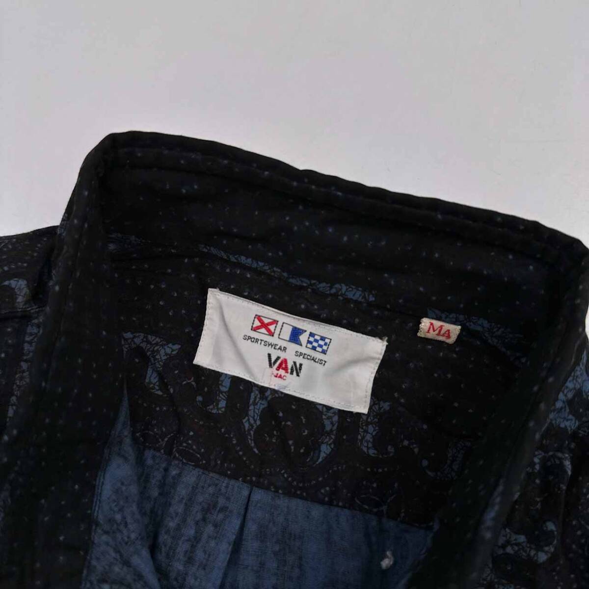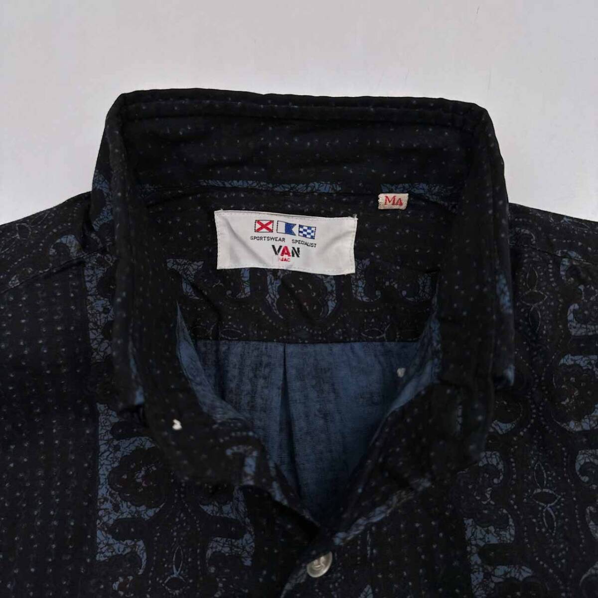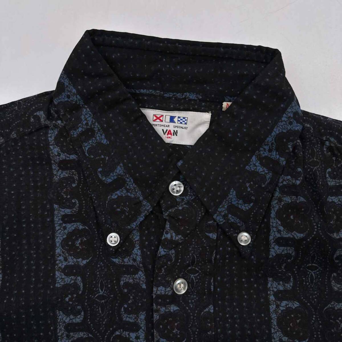 | 商品名 | 当時物!!ビンテージ◆VAN JAC 総柄 半袖 ボタンダウン BD シャツ MAサイズ/ネイビー 紺系/メンズ アイビー |