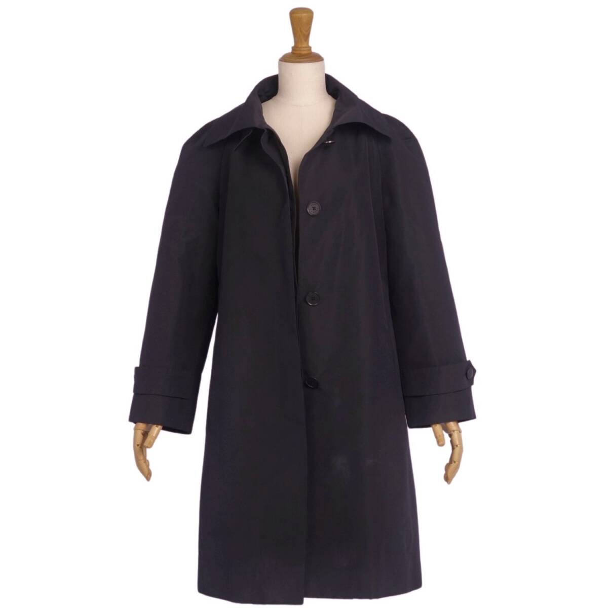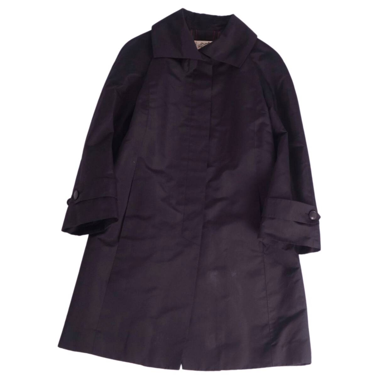 | Vintage エルメス HERMES コート ステンカラーコート バルマカーンコート シルク 無地 アウター レディース 36(S) 黒 |
