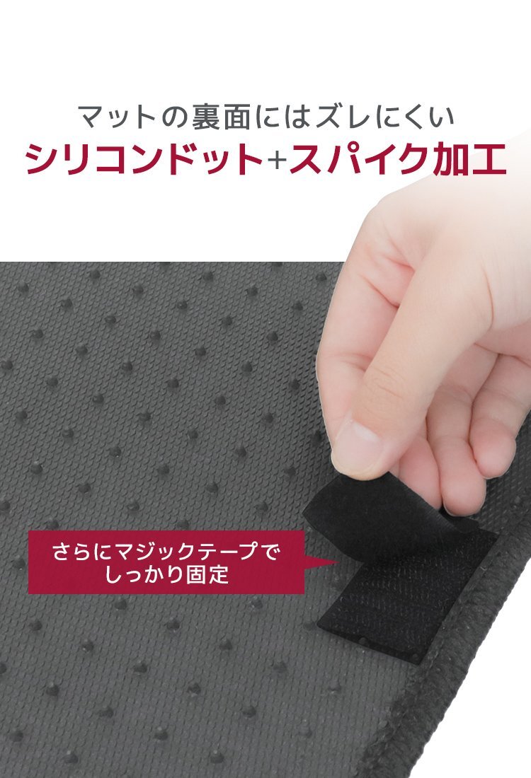 トヨタ プロボックス/サクシード 50系専用! 車種専用設計でピッタリおさまるフロアマットです。 マット裏面にはズレ防止のスパイク加工! さらにマジックテープでしっかり固定できます! 専用留めで安全固定! 外周はオーバーロック加工! 運転席のカカト位置に摩耗を防ぐヒールパットを装着! 短めの毛足でお手入れラクラク!水洗いOK! |