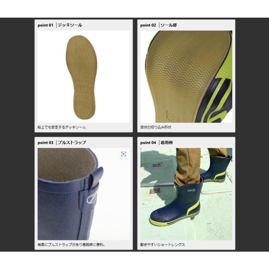 ●デッキソールのショートブーツ ●滑りやすい船上に対応するデッキソールのフィッシングブーツ。後方のプルストラップとショートレングスで着脱が容易。 ●船上専用の防水ブーツ。 ●サイズ:LLサイズ(27~27.5) |
