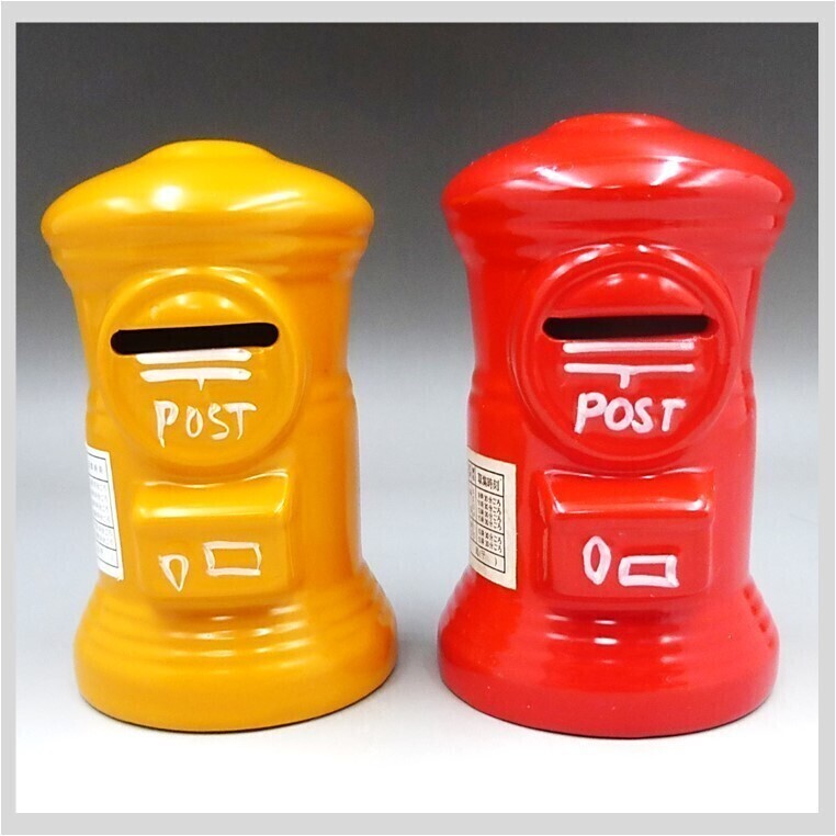 ◆製品名:日本郵便 郵便局 ポスト 貯金箱 昭和レトロ 陶器製 赤 黄 2個セット POST 景品 現状品