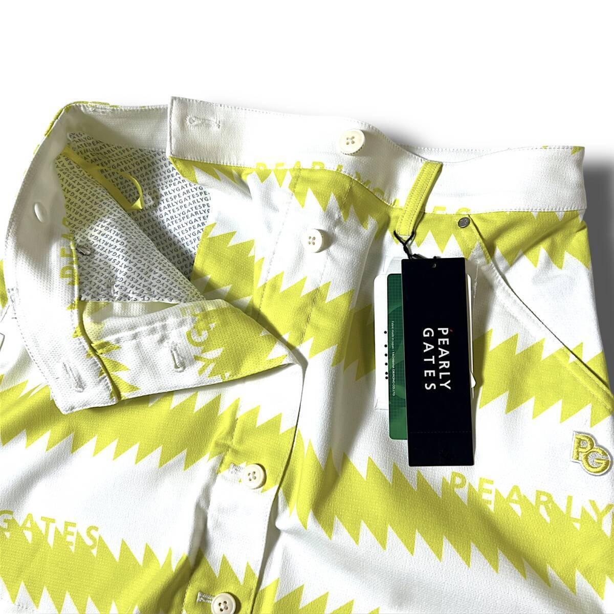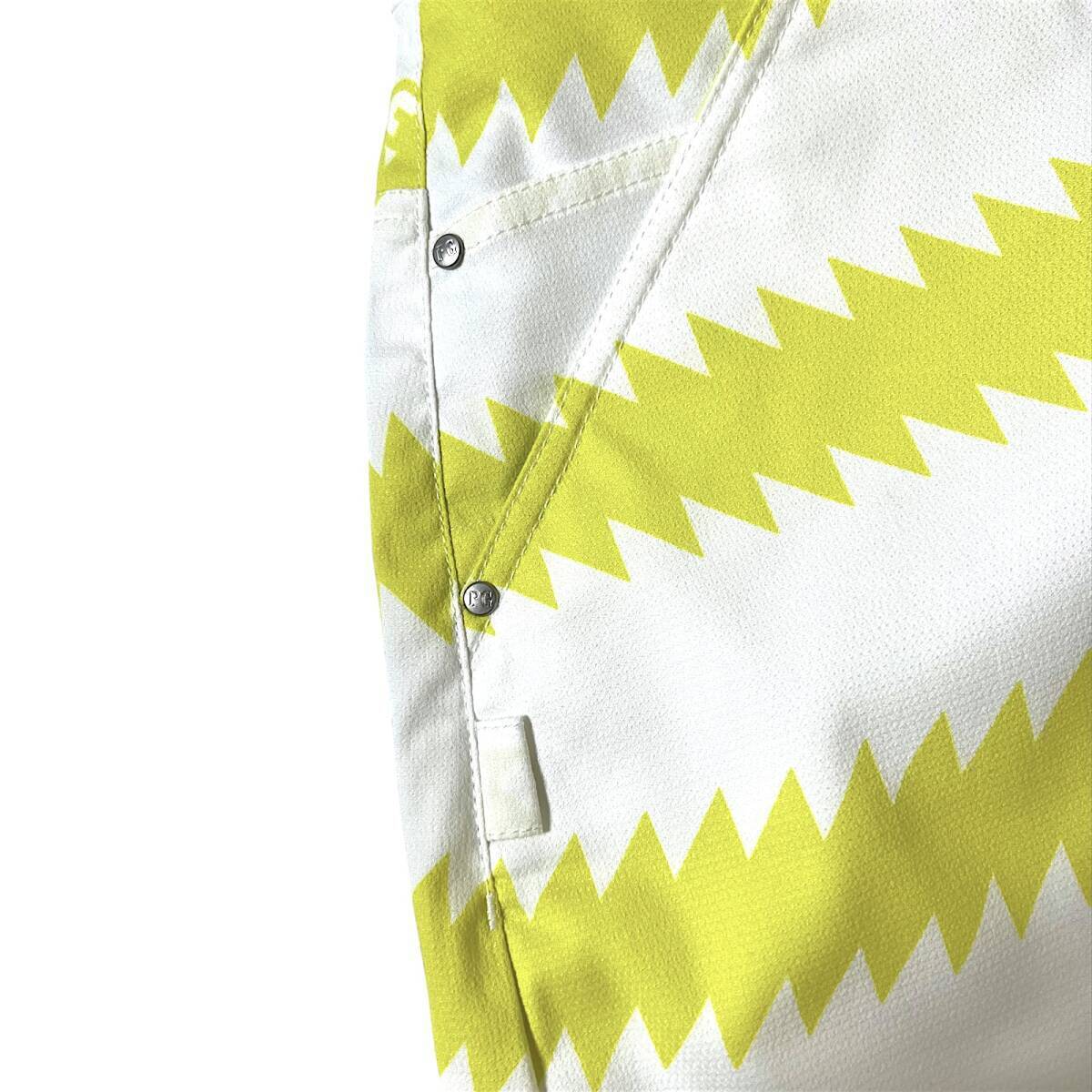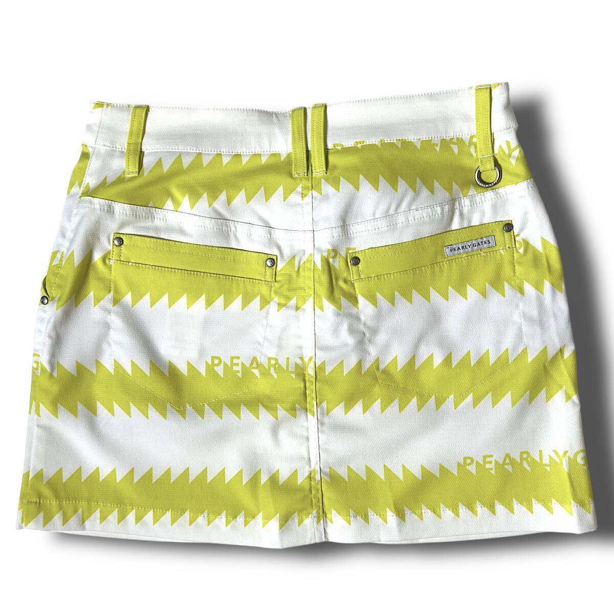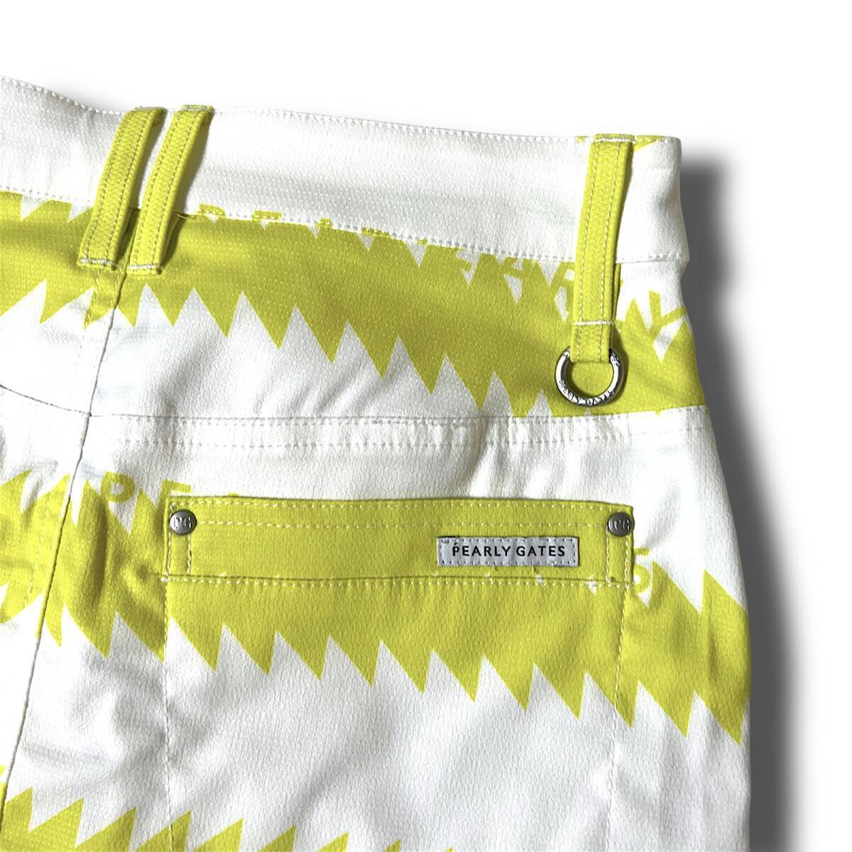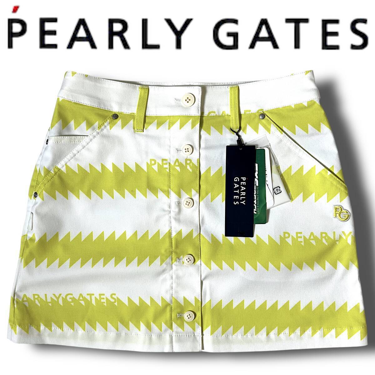 タイトル 新品 PEARLY GATES パーリーゲイツ 定価3万 速乾通気性 ドライタッチ ギザギザボーダー柄 ハイパワーストレッチ ミニ スカート ゴルフウェア レディース GOLF スポーツ レジャー 普段使い タウンユース カジュアル 春夏秋 031 ホワイト×ライムイエロー系