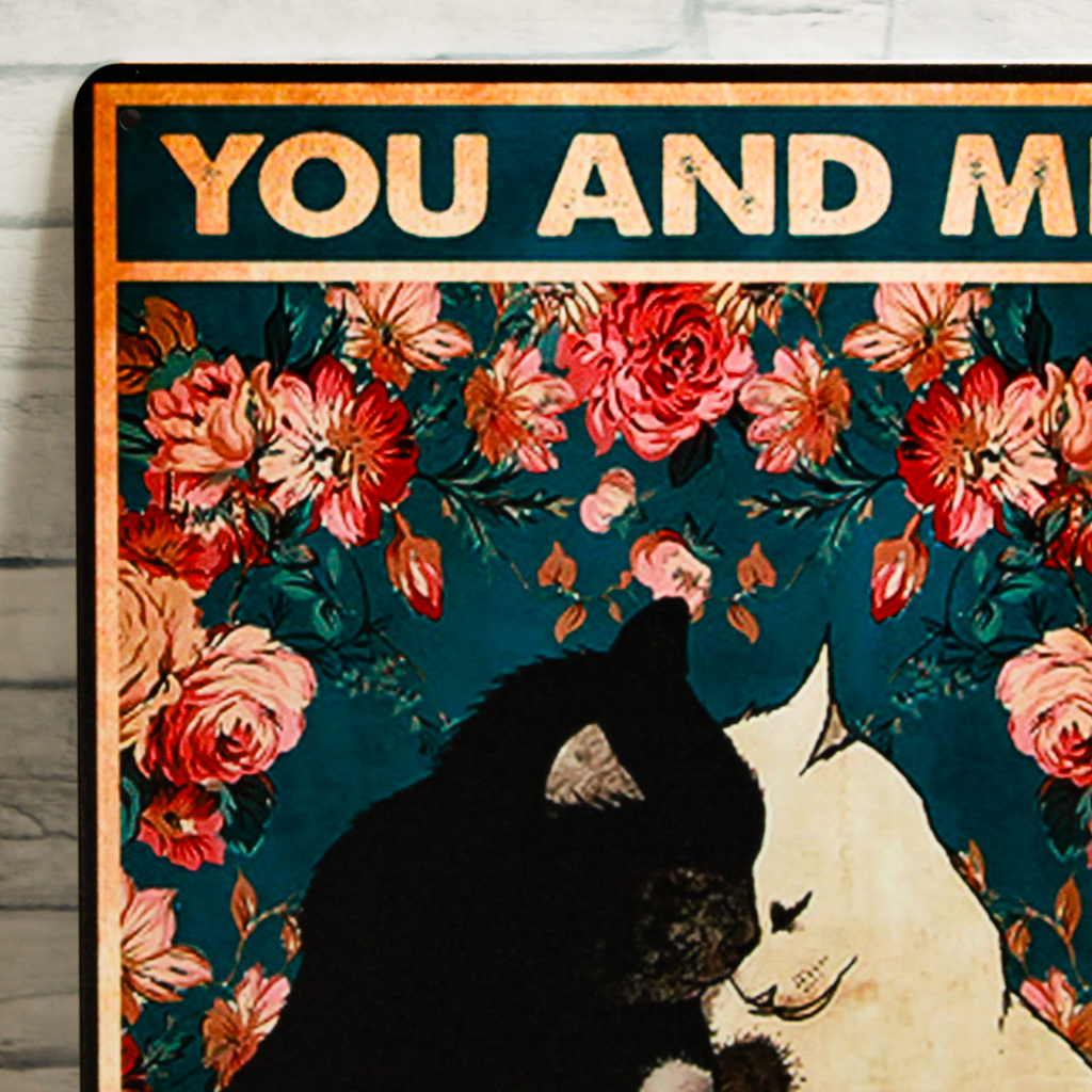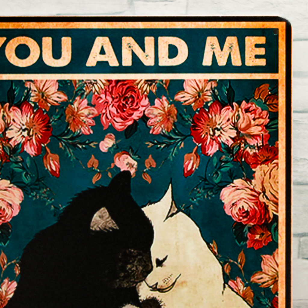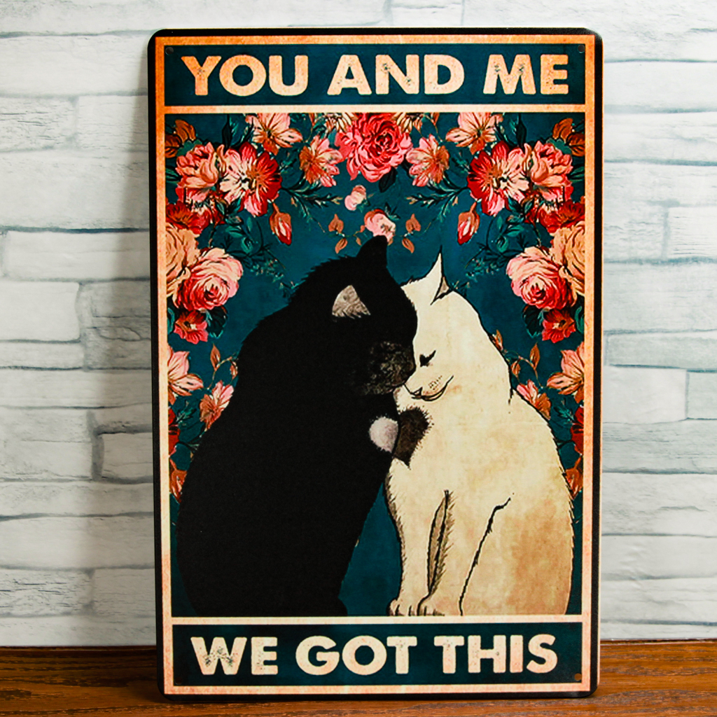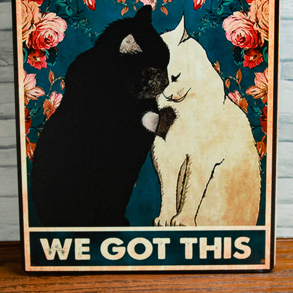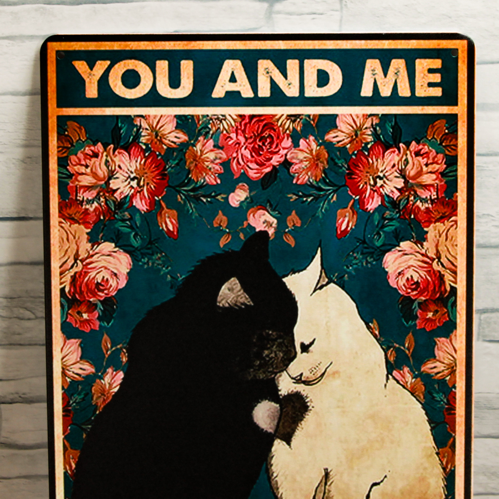 寄り添いあう猫のブリキ看板 四隅に約5㎜の紐等の通し穴が御座います。