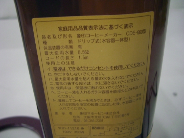 ◆◇象印/ZOJIRUSHI/コーヒーメーカー/珈琲通CDE-560/ワインレッド/ドリップ式/箱ダメージ有/m湘5.9-122◇◆ [浏览原始页面]