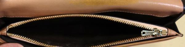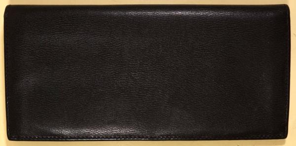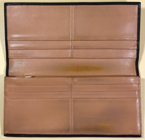 使用品ですのでしわ、擦れや汚れが有ります。財布の内側にも汚れが有ります。背面の角付近に若干の糸が切れてほつれが有ります。使用には支障ないです。サイズはW19xH9cm位です。
