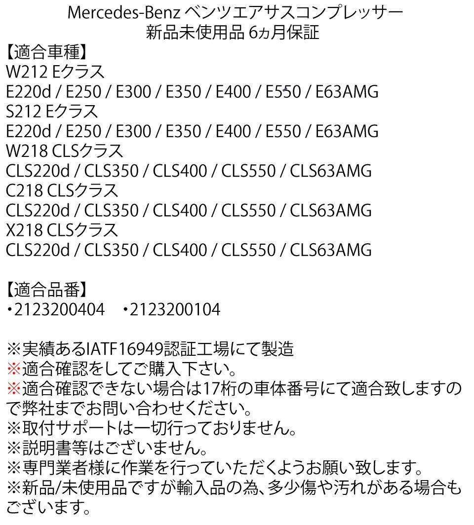 | 商品名 | ベンツ Eクラス ワゴン CLS W212 S212 W218 C218 X218 エアサスコンプレッサー 2123200104 0404 |