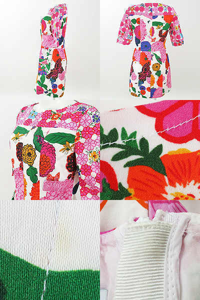 | カラフルなプリントが目を惹くワンピース♪ さらっと一枚着るだけでお洒落にきまる逸品です! フロント左右・上下にポケットが全部で4つございます。 バックファスナー仕様。 襟足部分と胸もとに薄汚れが見られます。 実寸 着丈約93cm 袖丈30cm 肩幅38cm バスト約89cm 【サイズ】:(I42) 【素 材】:(コットン97%・その他3%) 【 色 】:(色) 【程 度】:(B) **** 12150603-014 256 035 | ||||