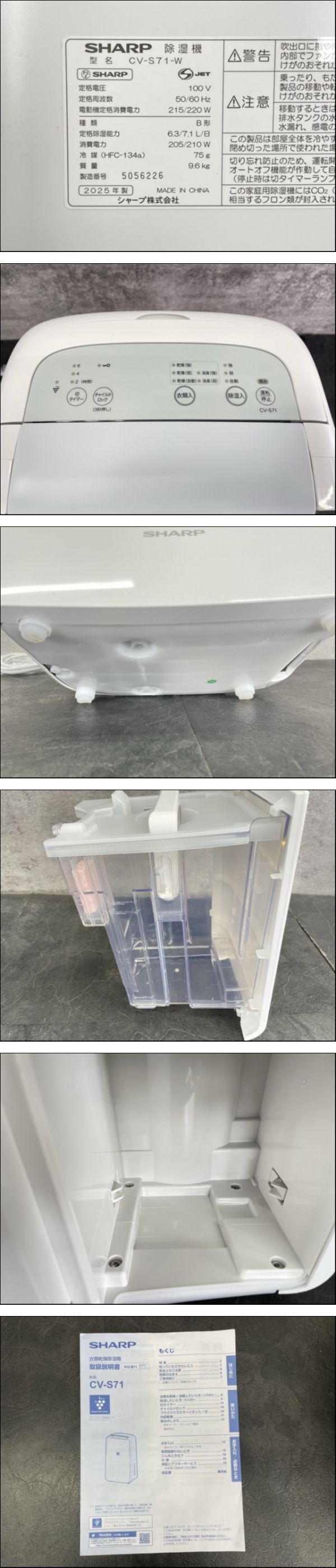 | ジャンク SHARP シャープ 衣類乾燥除湿機 CV-S71-W 2025年製 プラズマクラスター 124089 /23246 |