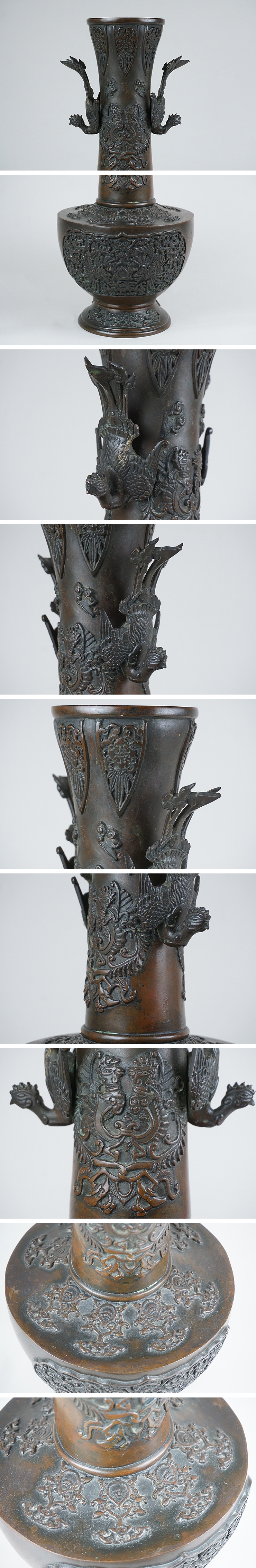 | E-008■時代細密銅器花壷 鳳凰双耳 鳳凰装飾花瓶 | ||