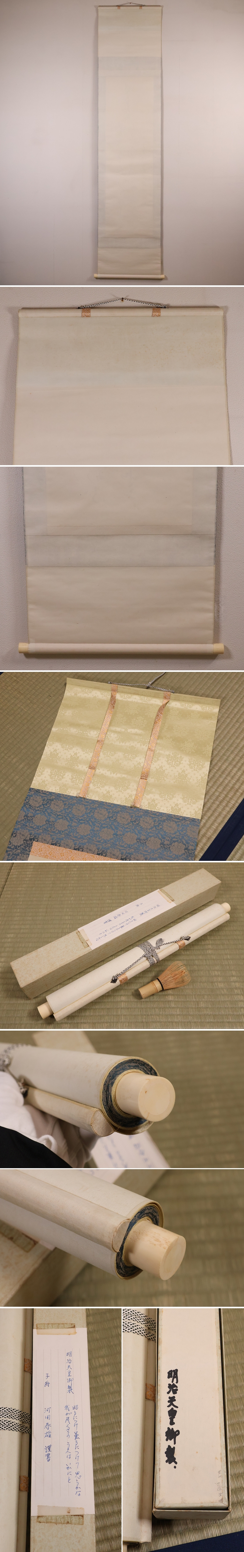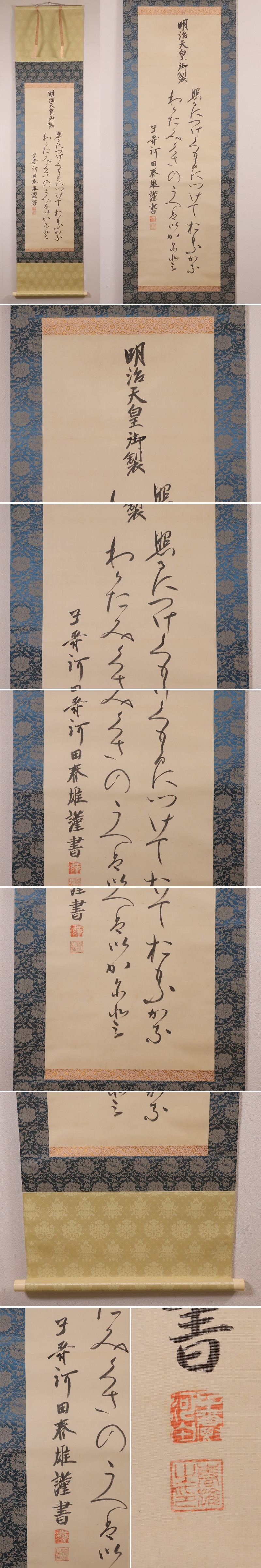 ◇【真作】明治天皇御製 河田春雄謹書 絹本 掛軸 CM408◇