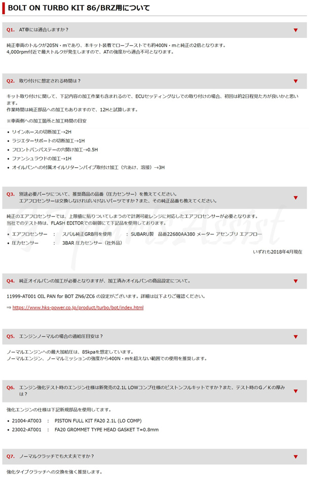 | 品 名 | HKS BOLT ON TURBO KIT |